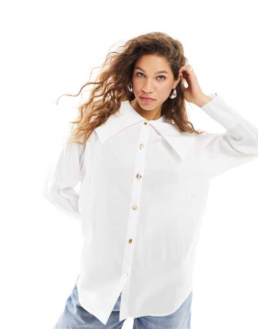 Camisa blanco marfil extragrande con solapas de Urban Revivo