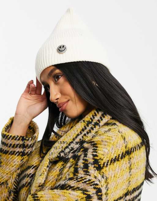 Gorro blanco con cara sonriente de canalé de Urban Revivo