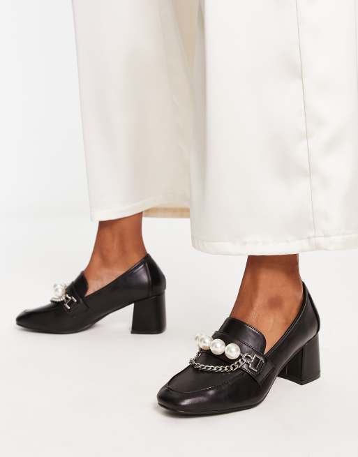 Mocasines negros de tacón con detalle de perlas sintéticas de Urban Revivo