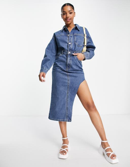 Vestido camisero midi azul vaquero de Urban Revivo
