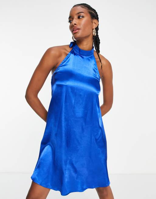 Vestido corto azul cobalto de cuello alto de satén de Urban Threads