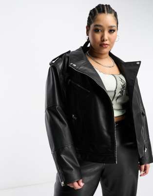 Chaqueta biker negra extragrande de cuero auténtico de Urbancode Curve