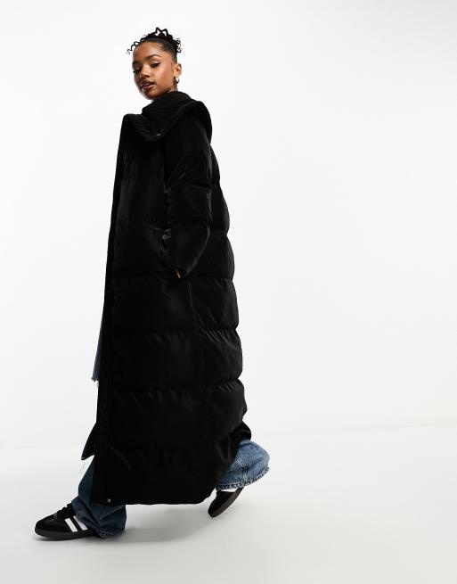 Abrigo de plumas largo negro con cuello esmoquin extragrande de Urbancode