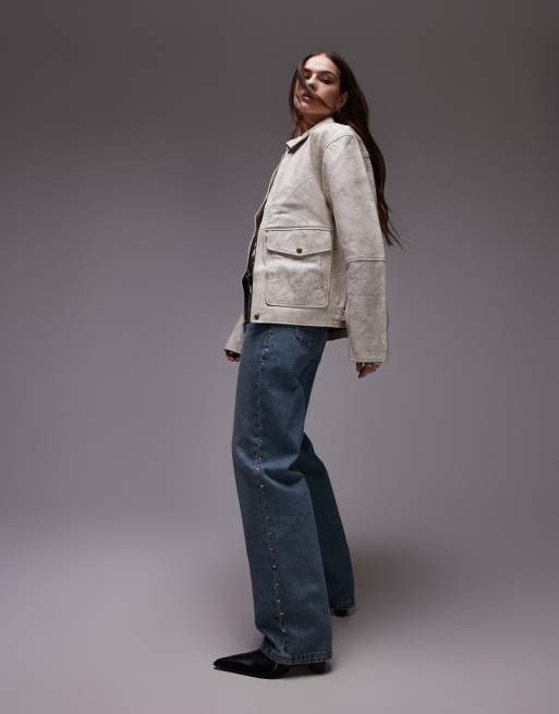 Chaqueta Harrington blanca con bolsillo de parche de cuero efecto agrietado de Urbancode