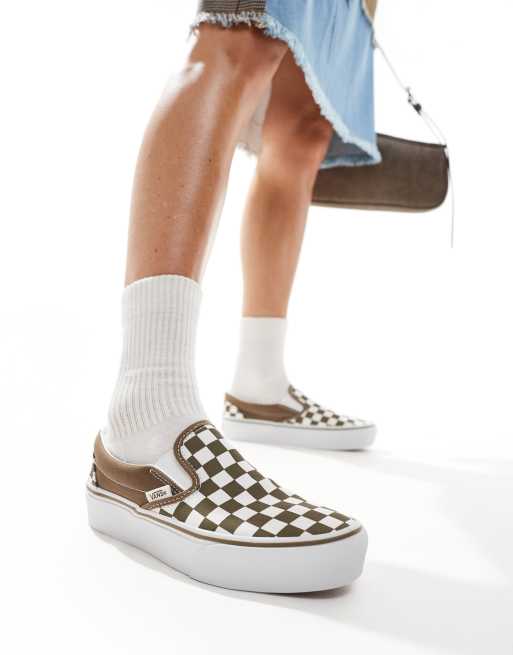 Zapatillas de deporte marrones y blancas con plataforma Slip On de Vans Classic