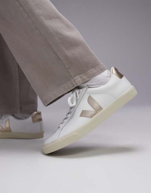 Zapatillas de deporte blanco intenso con detalle metalizado y logo de cuero Esplar de VEJA