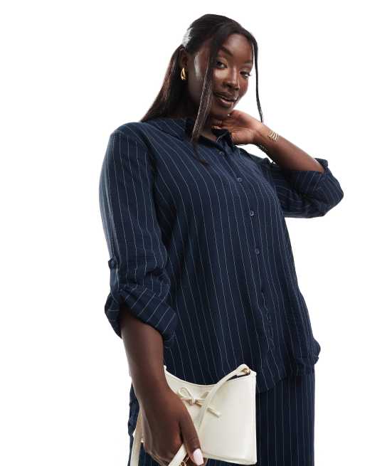 Camisa azul marino extragrande con raya diplomática de Vero Moda Curve (parte de un conjunto)