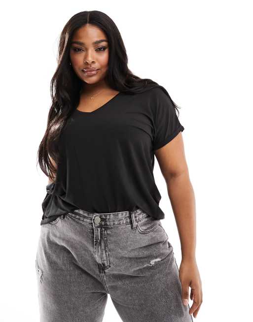 Camiseta negra con cuello de pico de Vero Moda Curve