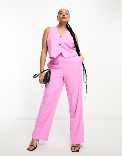 Conjunto rosa con raya diplomática de chaleco de traje de corte sartorial y pantalones de pernera ancha de Vero Moda Curve