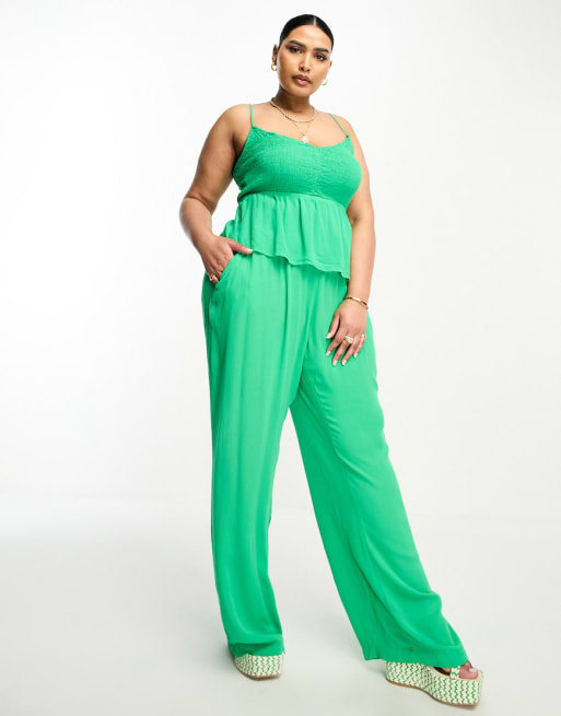 Conjunto verde luminoso de top de tirantes fruncido y pantalones de pernera ancha de Vero Moda Curve