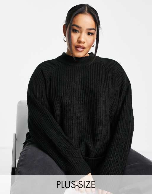 Jersey negro con cuello alto de punto grueso de Vero Moda Curve