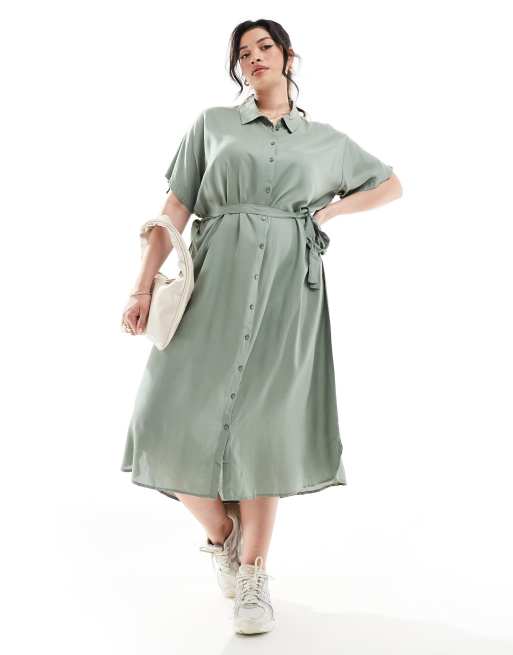 Vestido camisero midi verde con cinturón de Vero Moda Curve