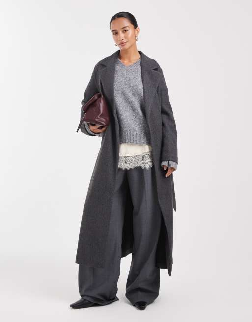 Abrigo de vestir extralargo gris oscuro melange con lazada en la cintura de Vero Moda Petite