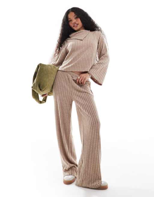 Pantalones beis de pernera ancha de punto acanalado de Vero Moda Petite (parte de un conjunto)