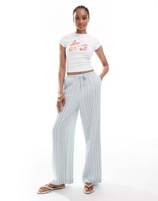 Pantalones a rayas verdes de pernera ancha de algodón de Vero Moda Tall