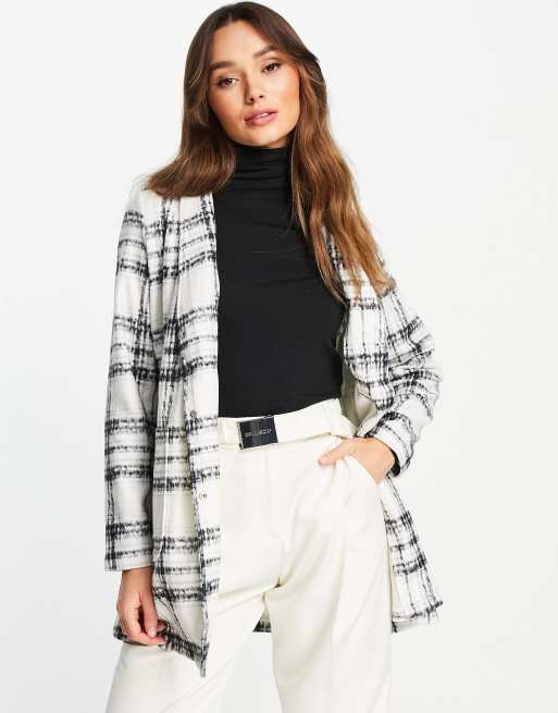 Abrigo blanco a cuadros negros de corte recto con acabado cepillado de Vero Moda
