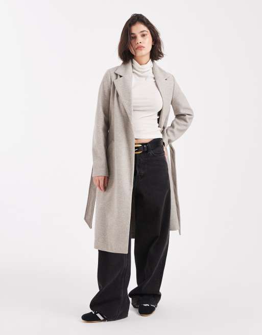 Abrigo de vestir midi color visón melange con cinturón de Vero Moda
