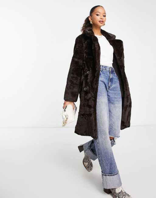 Abrigo largo marrón de piel sintética de Vero Moda