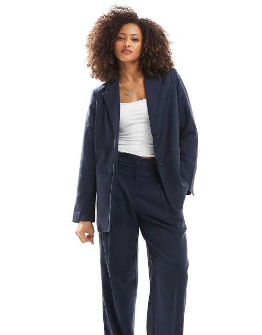 Americana de sastre azul marino con patrón de espiga de Vero Moda (parte de un conjunto)