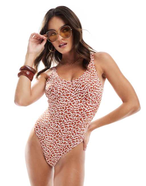 Bañador naranja canela con aplicación texturizada de Vero Moda