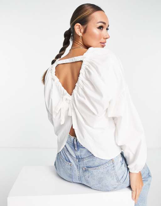 Blusa blanca fruncida con lazada en la espalda Aware de Vero Moda