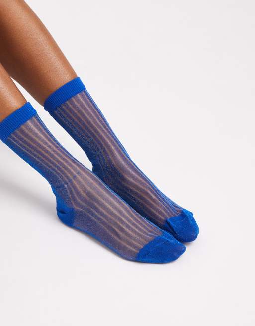Calcetines azul marino oscuro transparentes a rayas de Vero Moda