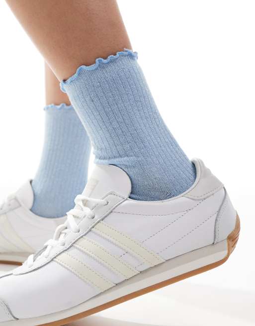 Calcetines azules con acabado de purpurina y borde de volantes de canalé de Vero Moda