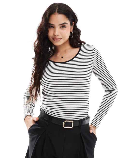 Camiseta blanca y negra a rayas de manga larga con diseño reversible de Vero Moda