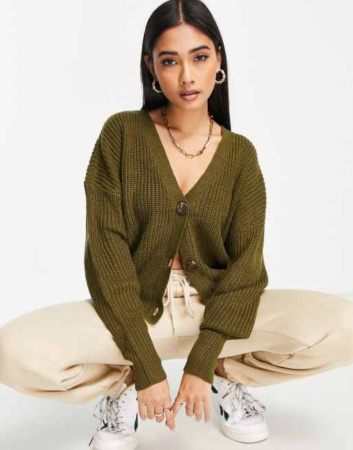 Cárdigan verde oliva con cuello de pico de Vero Moda