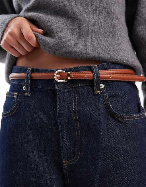 Cinturón marrón coñac estrecho de cuero sintético de Vero Moda