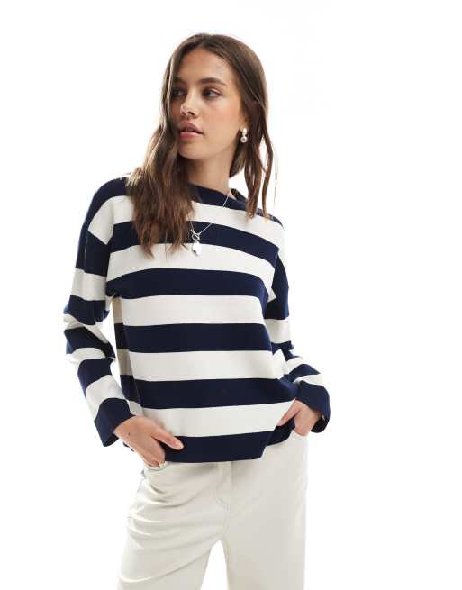 Jersey a rayas azul marino y crema extragrande de punto estructurado de Vero Moda