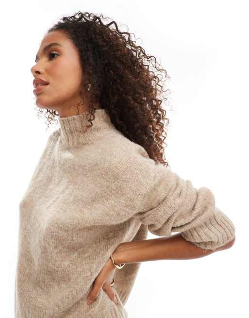 Jersey beis jaspeado con cuello alto de canalé de Vero Moda