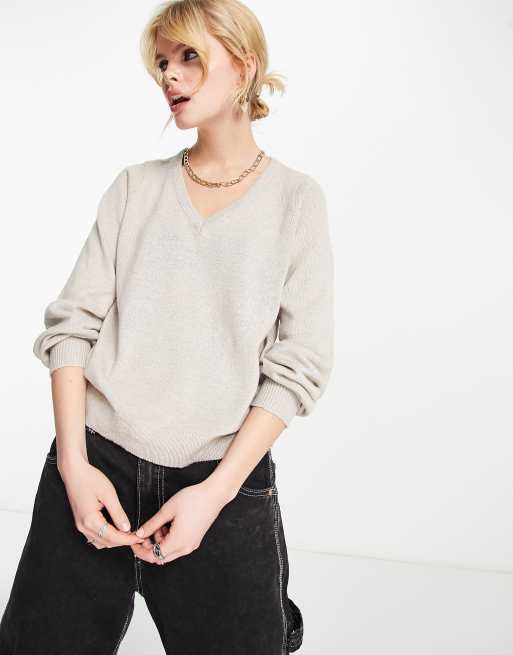 Jersey blanco abedul con cuello de pico de Vero Moda
