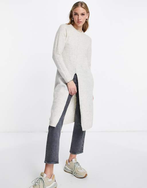 Jersey largo color crema con abertura en el bajo de Vero Moda
