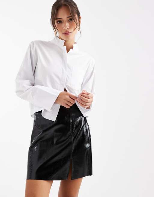 Minifalda negra de poliuretano efecto vinilo con detalle de muesca de Vero Moda