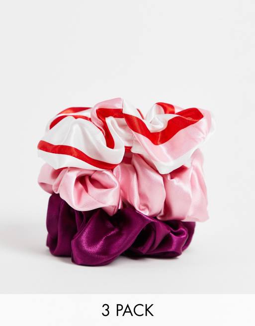Pack de 3 coleteros a juego de color burdeos, rosa y rayas rosas de satén de Vero Moda