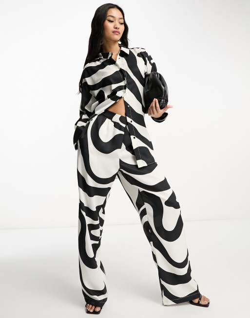 Pantalones monocromáticos de pernera ancha con estampado abstracto de Vero Moda (parte de un conjunto)