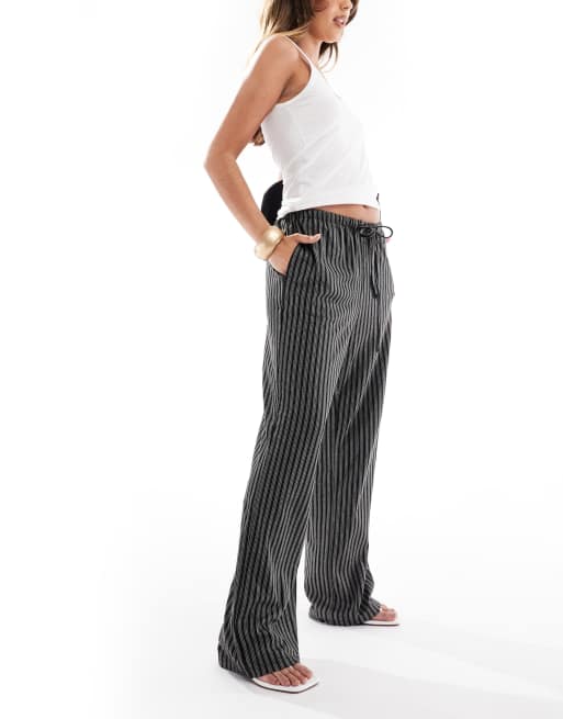 Pantalones negros de pernera ancha con raya diplomática y cordón ajustable de Vero Moda