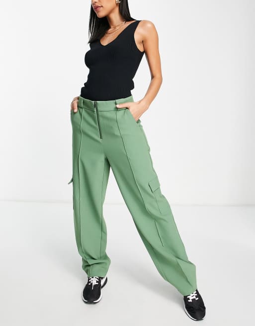 Pantalones verdes utilitarios de sastre con cremallera delantera de Vero Moda