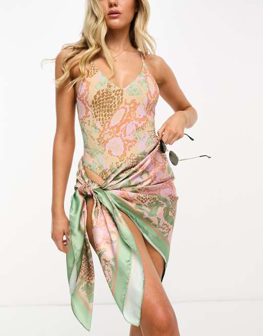 Pareo largo en tonos pastel con estampado de serpiente de satén de Vero Moda