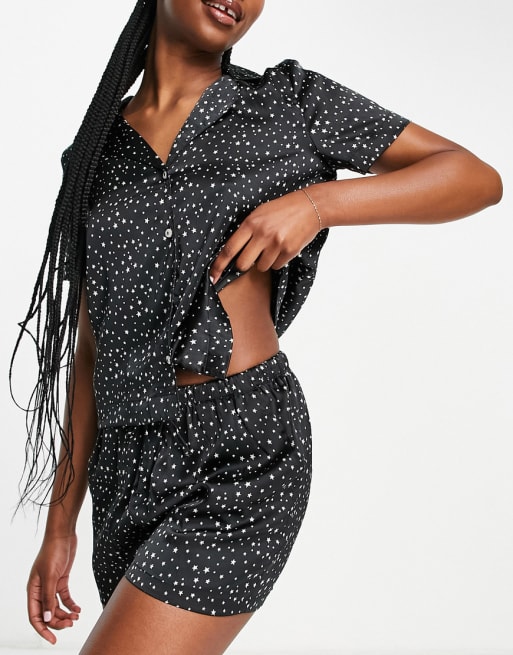 Pijama negro con antifaz a juego de satén de Vero Moda