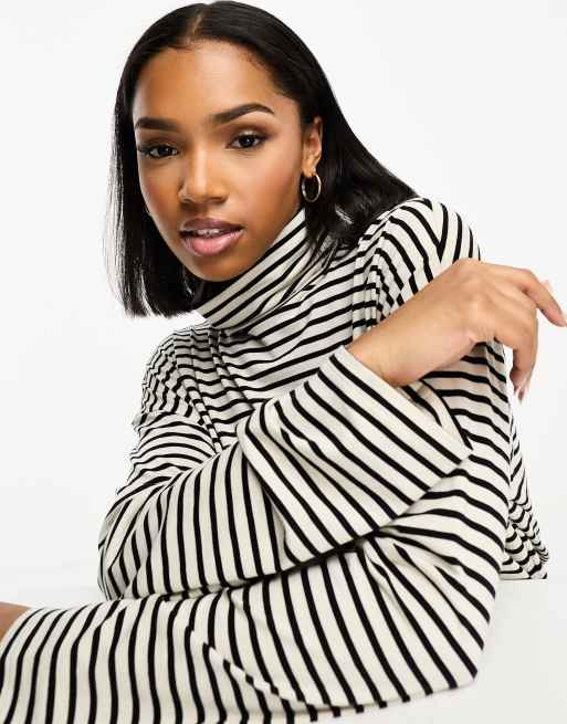 Top a rayas color negro y crema con cuello vuelto Aware de Vero Moda