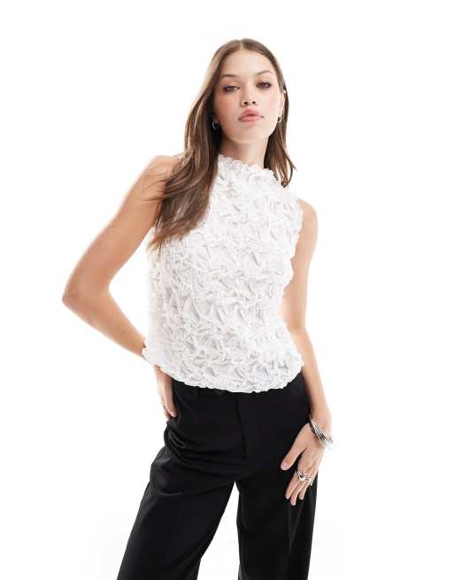 Top blanco sin mangas de tejido texturizado de Vero Moda