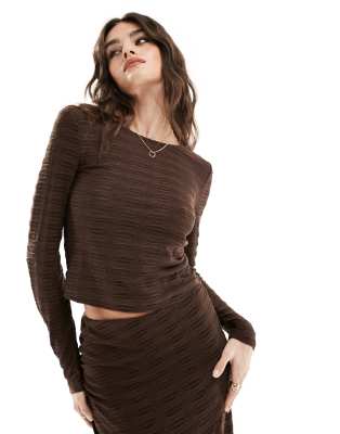 Top marrón chocolate de manga larga con acabado texturizado de Vero Moda (parte de un conjunto)
