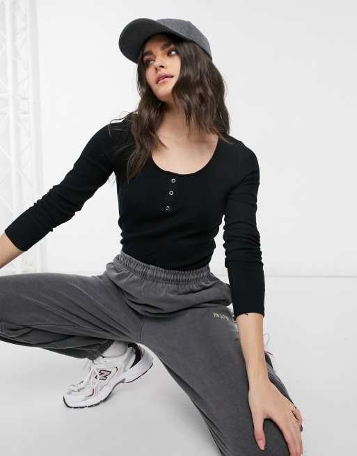Top negro con cuello ancho de canalé de Vero Moda