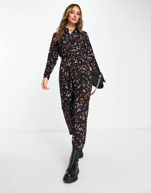 Vestido camisero largo negro con estampado floral de Vero Moda