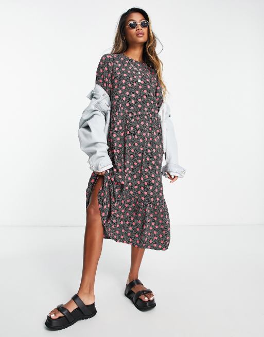 Vestido corto amplio con estampado de lunares rosas de Vero Moda