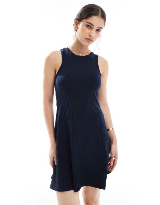 Vestido corto azul marino con espalda de nadadora de canalé de Vero Moda