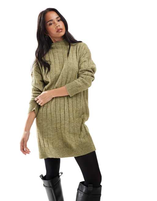 Vestido corto verde melange extragrande de canalé de Vero Moda