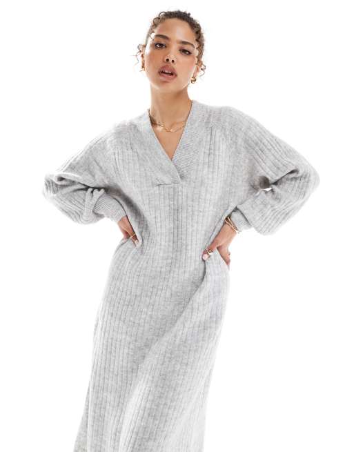 Vestido gris claro melange estilo jersey extragrande de canalé suave de Vero Moda